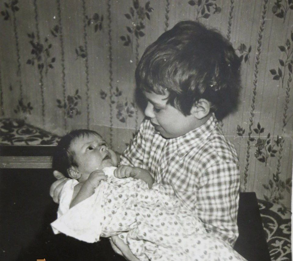 😘 На фото я с братом, да. Примерно так я всю жизнь и смотрю ему в рот)). А ещё в совсем раннем детстве у меня были чёрные волосы.
