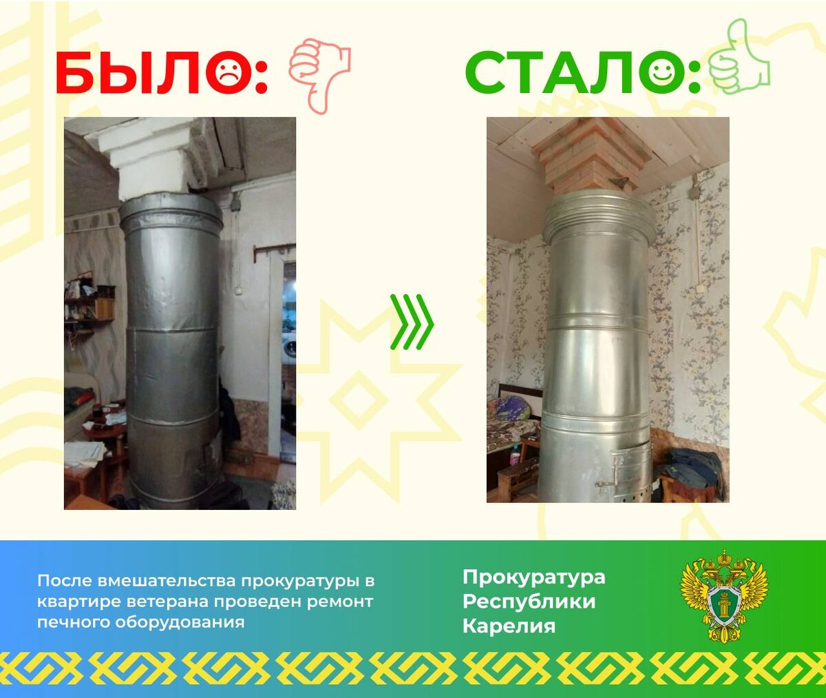 Ветерану в Карелии отремонтировали печи после вмешательства прокуратуры