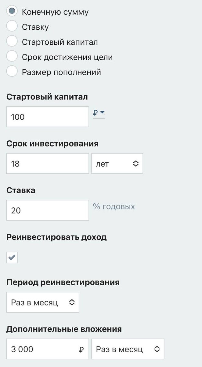 А вот и возможно 😅 Это заблуждение. Представьте, что вы молодая мамочка, только что родившая первенца. Вместо покупки 100500 погремушки на ВБ, лучше потратьте это время и деньги для создания инвестиционного счета для вашего ребенка. Еще у наших родителей были популярны «сберкнижки». (По итогу ничего путного изнизу не вышло. Но сам факт заботы о денежном будущем ребенка похвальный) Так вот Создаем инвестиционный счет и откладываем на него по 100 рублей в день, время от времени покупая на них акции/облигации/фонды Что вы получите?⤵️ 100 рублей в день - грубо говоря 3.000 рублей в месяц 18 лет 20% годовых - % дохода, который 100% будет при долгосрочных инвестициях Итого: Сумма всех пополнений 648 000 рублей Доход 5 570 544 рублей Итоговая сумма 6 218 644 рублей Если вы живете в небольшом городе - пожалуйста, выпускаете ребенка из родительского гнезда с капиталом на недвижимость. На хорошую недвижимость. А если проживаете в крупном - то оплачиваете первый взнос за ипотеку