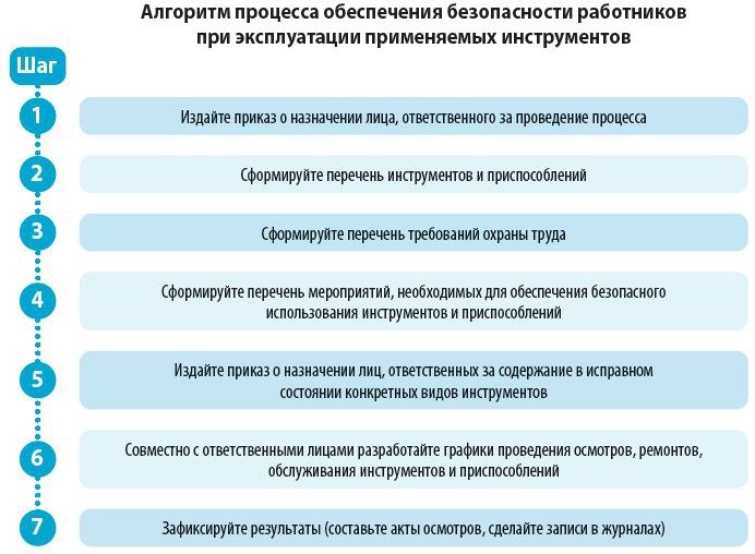 📂 Алгоритм процесса обеспечения безопасности работников при эксплуатации применяемых инструментов