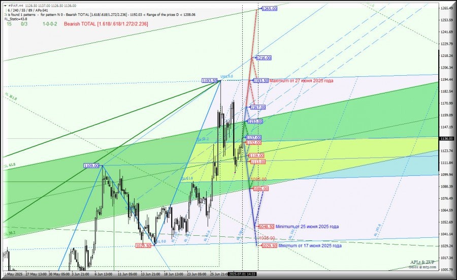 https://basechop.ru/wordpress/?p=48833 Операционный масштаб Minute (таймфрейм h4) Основные технические уровни для торговли #PAF-h4 – обзор вариантов движения c 02 июля 2025 года. Предыдущий обзор Palladium Current Month (таймфрейм h4) от 23.06.2025 г. 11:32 ____________________ Palladium Current Month Развитие движения #PAF-h4 с 02 июля 2025 года продолжится с учетом отработки и направления пробоя достаточно узкого диапазона: – уровень сопротивления 1137.00 на нижней границе канала 1/2 Median Line Minuette-h1; – уровень поддержки 1132.00 на верхней границе ISL38.2 вил младшего операционного масштаба Minute-h4. Восходящее движение: При пробое уровня сопротивления 1137.00 движение Palladium Current Month получит развитие в канале 1/2 Median Line (1137.00 – 1153.00 – 1167.00) вил младшего операционного масштаба Minuette-h1 с последующей возможностью достижения maximum 1193.50 от 27 июня 2025 года и контрольной линии UTL Minuette-h1 (1216.00). Нисходящее движение: При пробое…