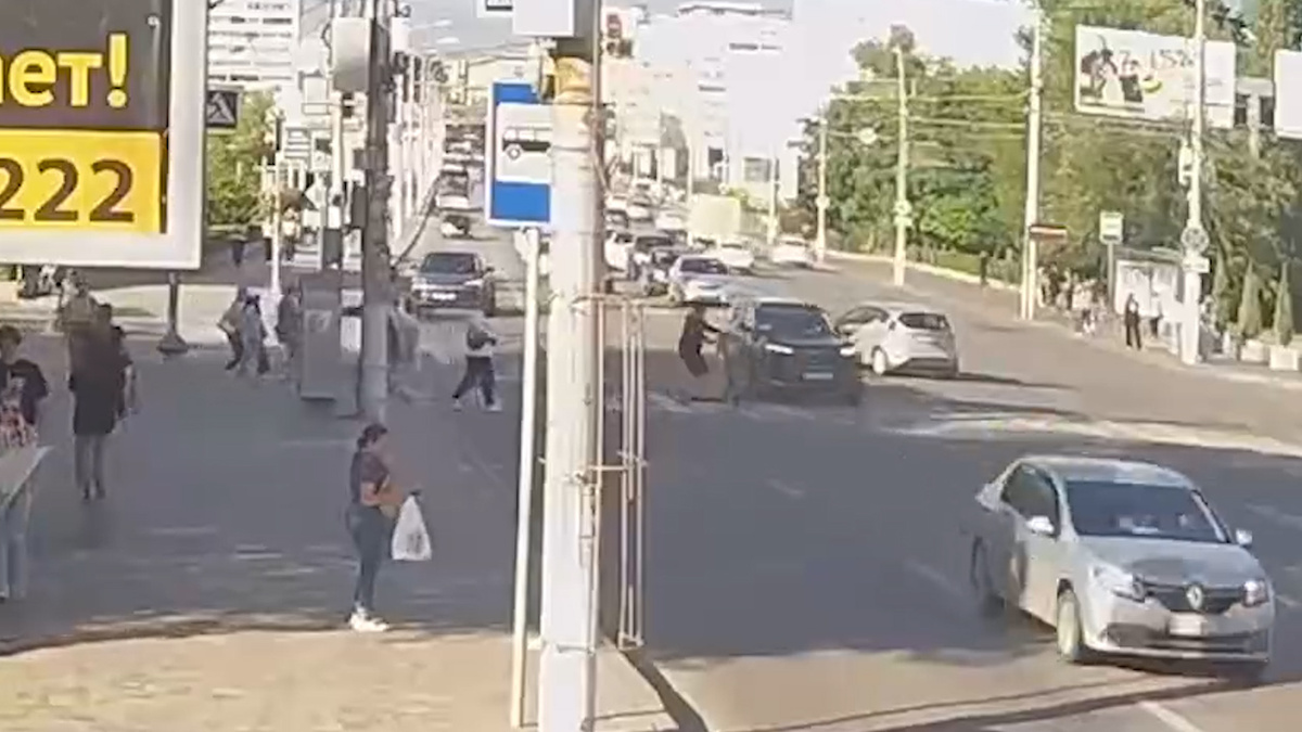Экипажи ГАИ работают на месте ДТП в Ворошиловском районе Волгограда. Момент столкновения самоката с машиной зафиксировали камеры видеонаблюдения. Фото: пресс-служба ГУ МВД России по Волгоградской области В Волгограде устанавливают обстоятельства аварии с участием самокатчика. Водитель самоката попал под колеса легкового авто на пешеходном переходе, сообщили в ГУ МВД России по региону. Предварительно, авария произошла сегодня в 17:20. На месте работают экипажи ГАИ. Смотрим «Вести. Волгоград»: smotrim.ru/Volgograd Подписывайтесь на наши страницы в соцсетях: Telegram, ВКонтакте, Одноклассники, Дзен