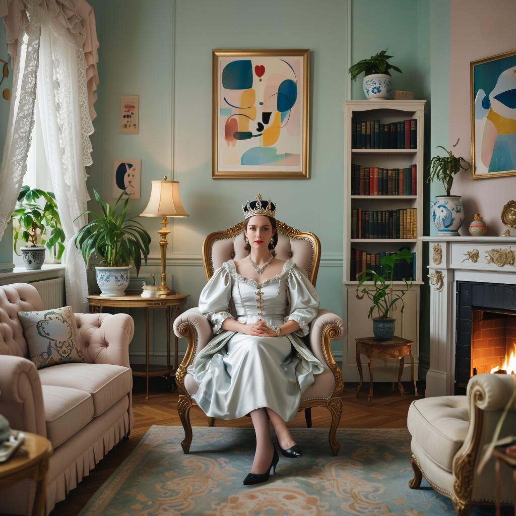 (Психотерапевт раскладывает пасьянс на широком столе. Мягкий свет лампы отблескивает на картах. Дверь открывается медленно и театрально. Входит элегантная женщина в строгом чёрном костюме с алой брошью. Белоснежные волосы — безупречная причёска; на руке — старинное кольцо с крупным камнем.)