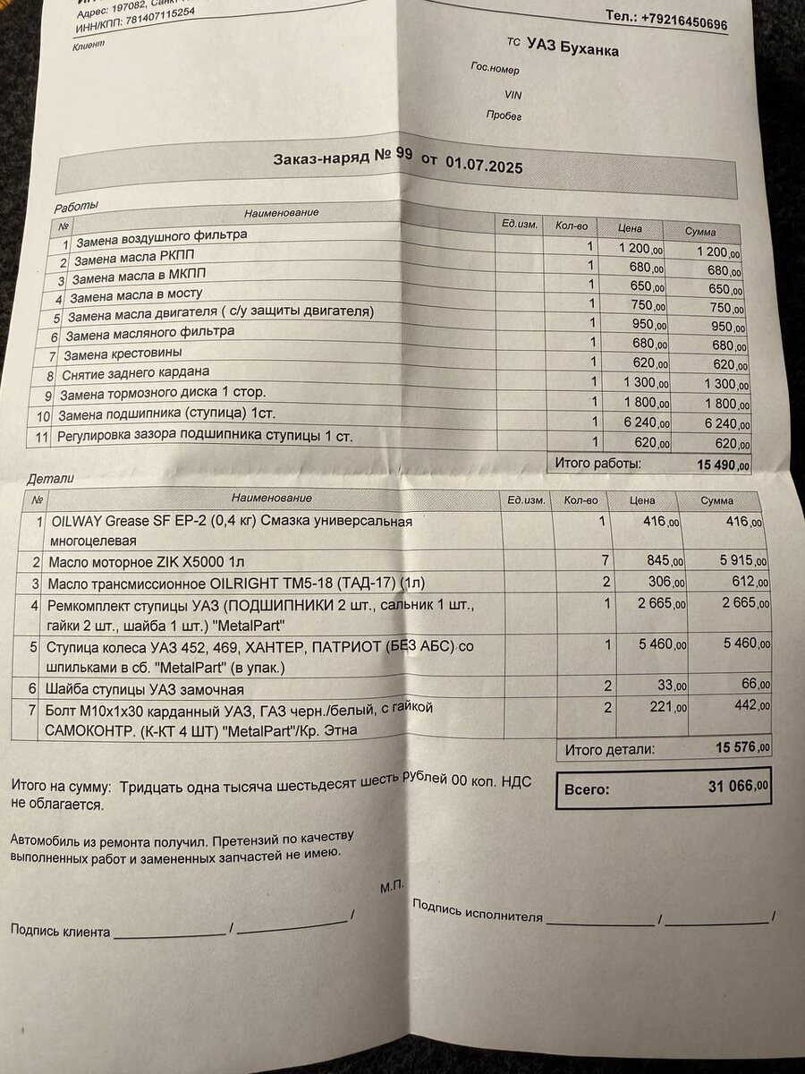 Заказ-наряд на Буханочку