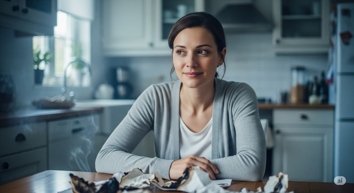 После ухода свекрови я долго сидела на кухне и смотрела в пустую раковину. Там, где еще час назад был пепел от моих документов.