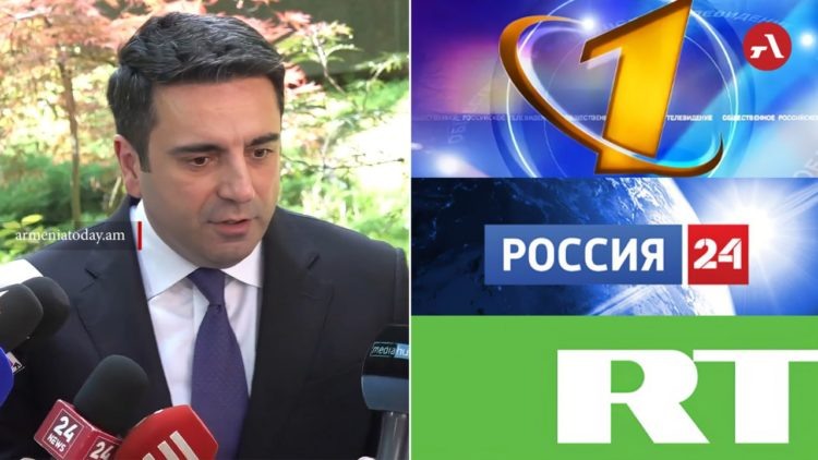Спикер армянского парламента Ален Симонян заявил о необходимости серьезно рассмотреть вопрос прекращения вещания российских телеканалов в Армении. Такое мнение парламентарий высказал в беседе с журналистами в НС, комментируя арест главы группы компаний «Ташир» Самвела Карапетяна, реакцию на него России и возможное влияние этого на армяно-российские отношения. Трансляцию брифинга вела Armenia Today. «Возможно, они посмотрели передачи своих дегенератов-ведущих и у них сложилось впечатление, что это реально вредит армяно-российским отношениям, и, на самом деле, их выступления действительно вредят армяно-российским отношениям», — считает Симонян. Говоря о заявлениях российских ведущих и представителей шоу-бизнеса в поддержку Карапетяна, спикер призвал заниматься их своими делами, и не вмешиваться во внутренние дела Армении. «Программы этих манкуртов, обезьян давно закрыты в нашей стране, их въезд в страну тоже. Однако, если их госканалы позволяют себе вмешиваться во внутренние дела Армении