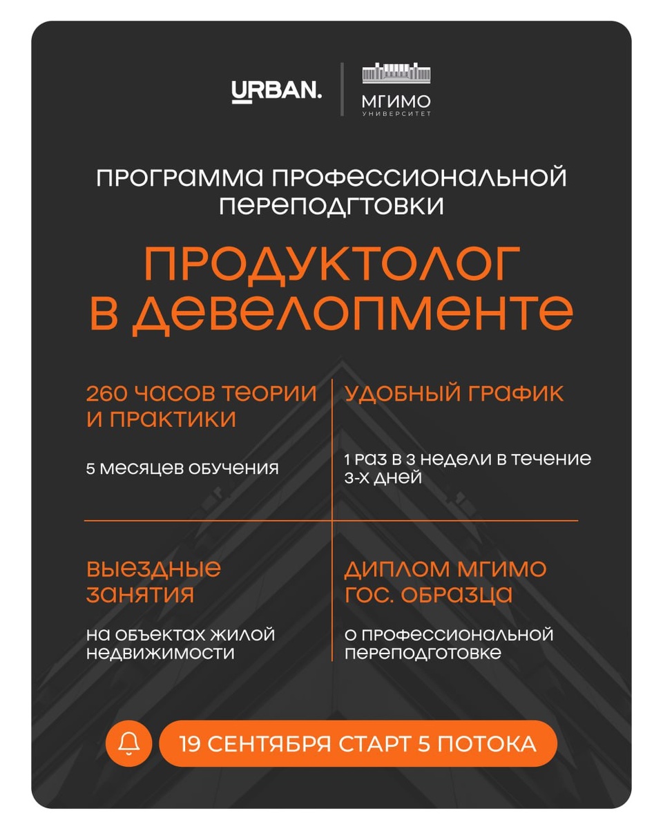 19 сентября стартует пятый поток курса МГИМО «Продуктолог в девелопменте»