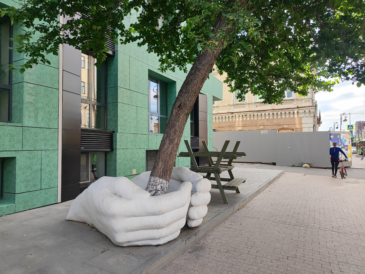 Тут есть и скверы. Например, сквер имени Крапивина, современный и очень приятный.