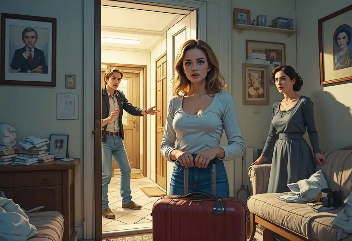 Через десять минут она вышла в коридор с чемоданом в руке. Свекровь сидела на кухне и мрачно грызла солёный огурец. Алексей — в той же позе на диване, только теперь с бутылкой в руке.