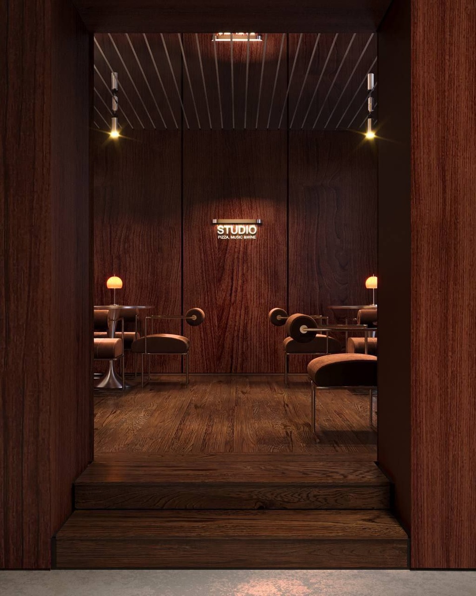 Интерьер от Александры Бельковой (бывшего ведущего архитектора DA Bureau) — получилась шкатулка из дерева и стали словно из вселенной сериала «Безумцы». Кухней руководит шеф-повар Дарья Байкова (новое лицо!). В дровяной печи печет пиццу, флэтбред на тесте от Руслана Агейченко (Big Wine Freaks, Le Moujik). К вину — крудо, шашлычки из мяса и морепродуктов и фритюрные закуски (картошка фри с Шампанью — база!).
