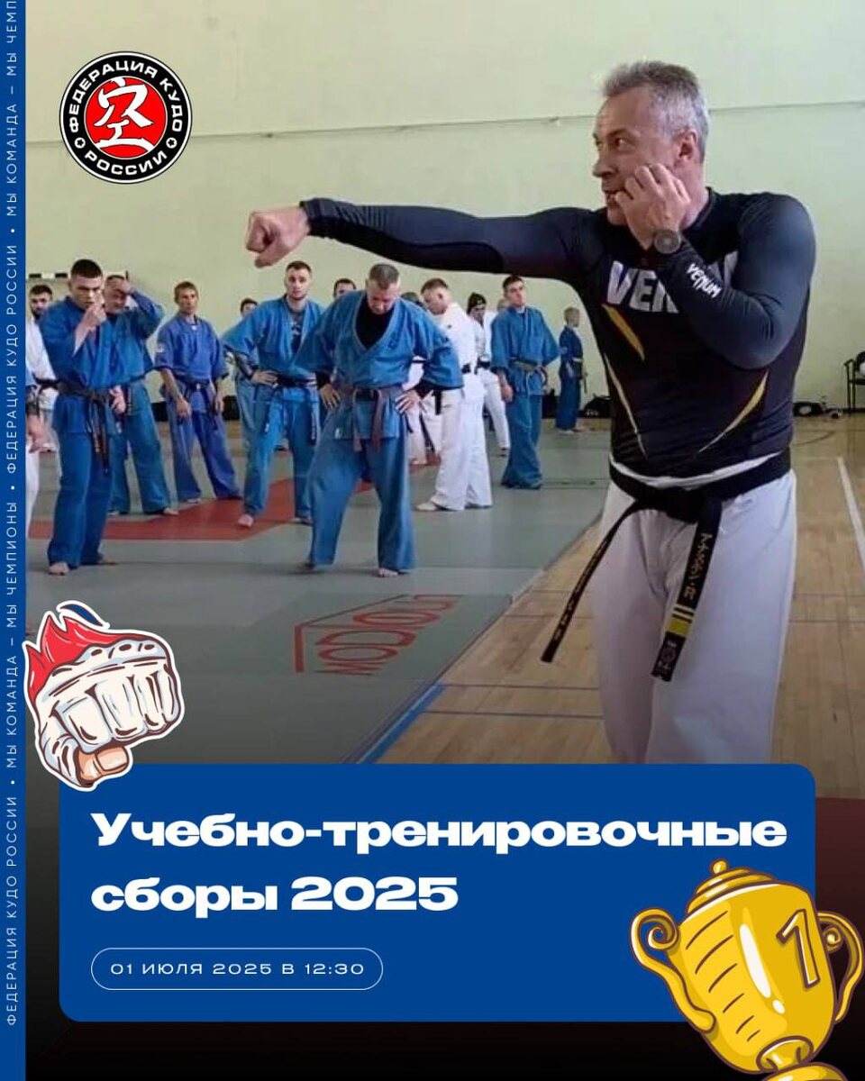 Сегодня стартуют Всероссийские сборы ФКР, которые уже традиционно пройдут с 1 по 5 июля на спортивной базе ФГБУ «ТЦСКР «Озеро Круглое». В сборах Федерации КУДО России примут участие более ста спортсменов, тренеров, руководителей региональных и местных отделений. Учебно-тренировочные мероприятия пройдут под руководством президента ФКР Анашкина Романа Михайловича ( ЗТР, ч. п. 7 дан) и вице-президента ФКР Зорина Владимира Ильича (ЗТР, ч. п. 7 дан). Для проведения семинаров и лекций приглашены опытные специалисты из разных областей, в том числе спортивный психолог, спортивный врач-кардиолог и другие. Как всегда участников ждут плотный график тренировок и лекций, бассейн, зарядки, много нового и познавательного.