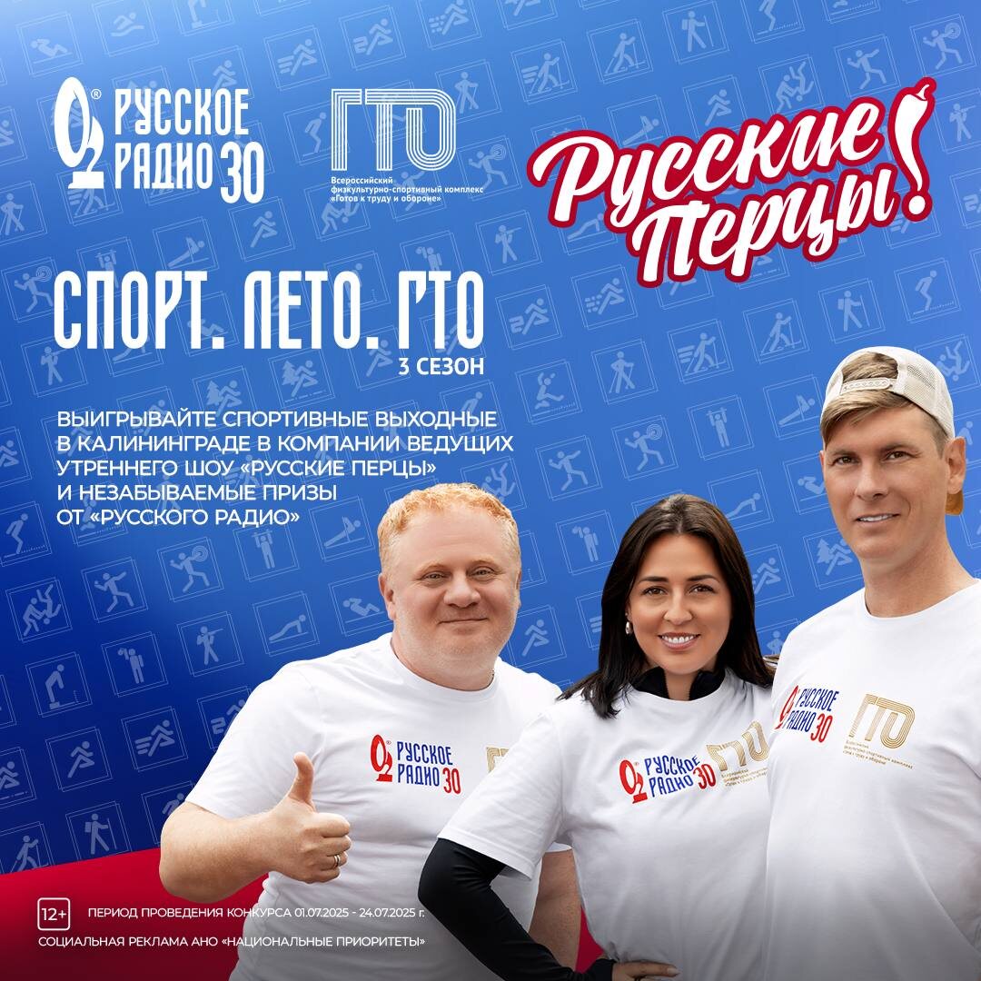 С 1 по 24 июля выполняйте нормативы ГТО, снимайте короткие видео и публикуйте их на сайте проекта https://spec.rusradio.ru/gto_2025 или в своих соцсетях с хештегом #спортлетогто Победителей дня мы будем объявлять с 14 по 24 июля в эфире Утреннего Шоу «Русские Перцы» и Шоу выходного дня «Вкрутую! По-русски». Авторы этих 10 лучших роликов получат крутые призы: сертификаты в спортивный магазин и пригласительные на два главных музыкальных события года — «Золотой Граммофон. Юбилейный концерт. Лучшее за 30 лет» и «Золотой Граммофон. 30-я Церемония вручения национальной музыкальной премии». Финал проекта состоится 24 июля — из числа победителей дня выберем пятерых участников, которые отправятся на спортивные выходные в Калининград с 8 по 10 августа. Но это ещё не всё! В этом году призов стало больше! Ведущие «Русских Перцев» — Антон Юрьев, Полина Жукова и Дима Морозов — смотрят ваши видео, выбирают любимые и вручают от себя специальные призы: сертификаты в спортмагазин и пригласительные на об