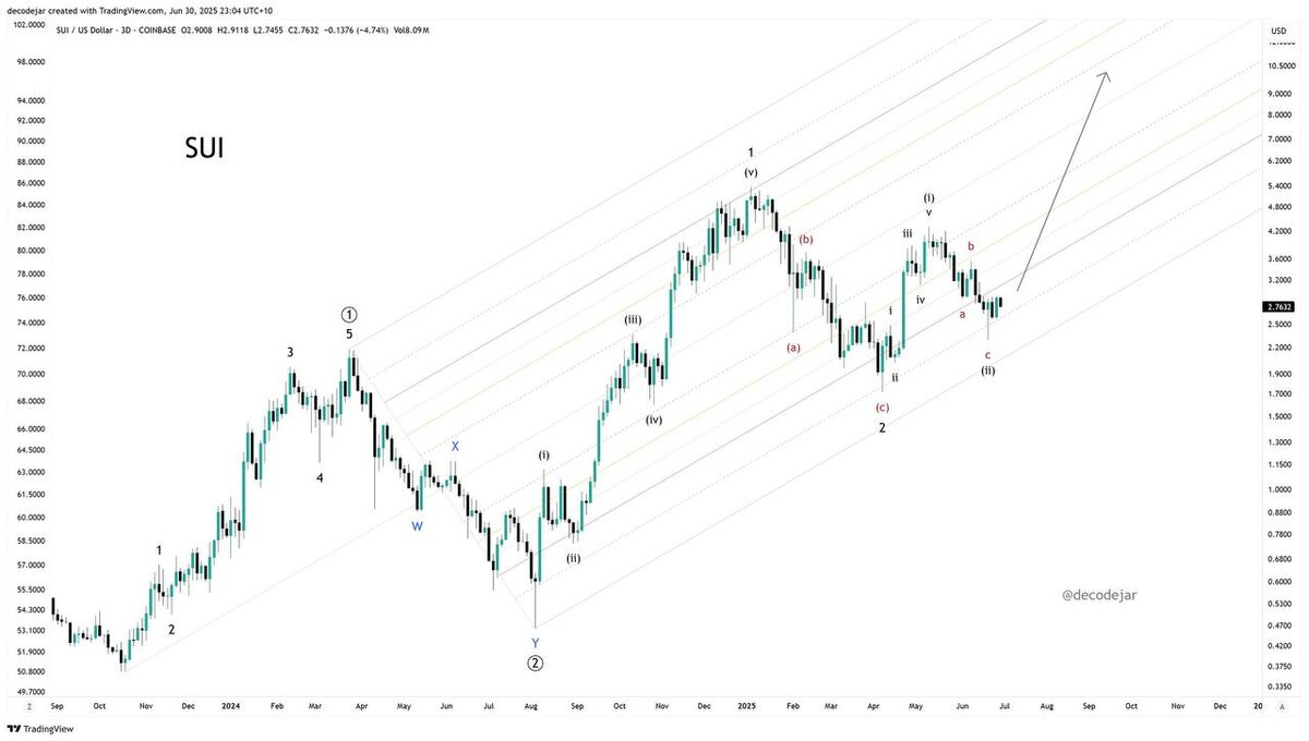 На графике — SUI/USD с разметкой по волнам Эллиотта.