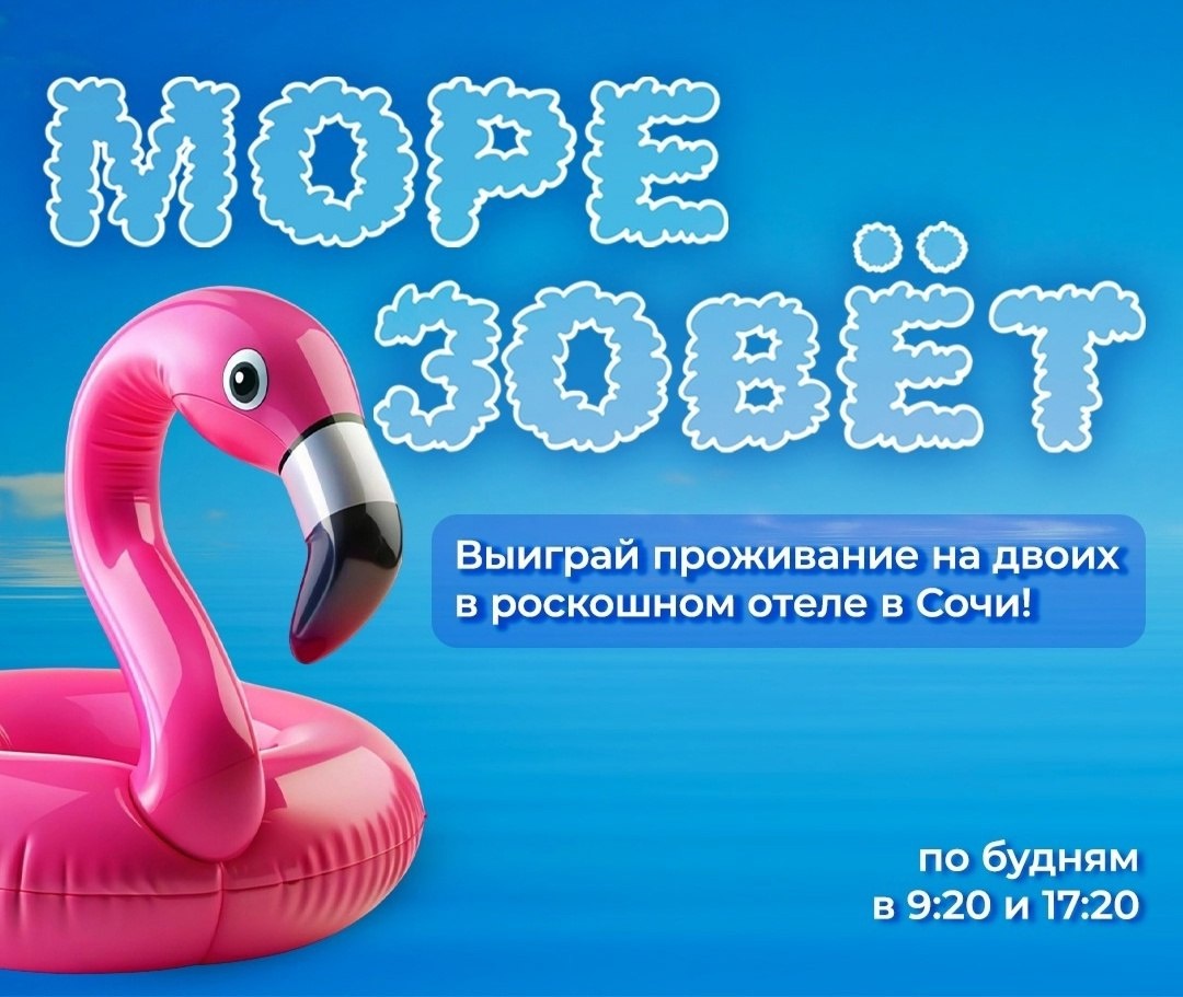 🌊 «Море зовёт!» на «Радио Ваня». В эфире «Радио Ваня» разыгрывается поездка к морю с пятидневным проживанием на двоих в отличном отеле Сочи. Слушателям нужно дозвониться в эфир по будням в 9:20 и 17:20 по телефону 8 (812) 325-69-06, правильно ответить на вопрос ведущих и дождаться финала. Каждый участник гарантировано получит фирменный приз от радиостанции, а 11 июля, среди всех претендентов, ведущие утреннего шоу «Батарейки» Варвара Пивоварова и Алексей Акопов определят победителя, которому и достанется главный приз.
