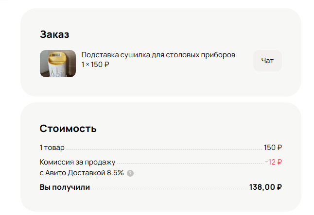 Июнь выдался спокойным — в этом месяце я почти не занималась продажами из-за поездки. Но даже несмотря на это, небольшой, но приятный старт дала новая подставка для приборов, которую удалось продать с помощью Авито-доставки. А следом улетел новый минеральный дезодорант — тот самый, который на маркетплейсах держит ценник около 900 рублей. Зерновой кофе тоже нашел своего покупателя. Новый мужской ремень уехал доставкой в соседний город. Термокружку купили самовывозом в день публикации объявления. Шпатель также забрали самовывозом на следующий день после публикации объявления. Но главной радостью стала продажа комплекта постельного белья — он провисел на площадке больше четырёх месяцев. Капсулы для стирки — мгновенная продажа с удобным самовывозом. Новый утюг Tefal — отправился к новому хозяину через Авито-доставку в последние дни месяца. Дарсонваль закрыл продажи июня, Авито-доставку заказали 30 числа. Месяц закрыла с показателями: