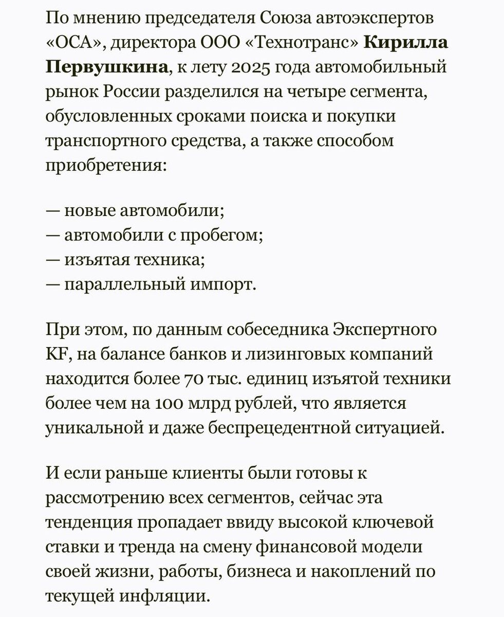 Вышла статья на «Kazan First» с моим комментарием на тему: исследование автомобильного рынка Татарстана «Рынок живет, участники встали на свои места, утвердились лидеры и появились банкроты. В целом сделки идут, регистрация в ГИБДД ежедневно по огромной очереди, автошколы учат, автокредиты выдаются. Кризиса нет, есть неопределенности и риски — ну а когда было иначе? Позитив в том, что мы как страна и как система взаимосвязи бизнесов смогли выдержать сложный период и быстро адаптировались. Недостаток в том, что новая инфраструктура авторынка не всем понятна до сих пор, а местами рынок «лихорадит», что мешает прогнозам и анализу. От этого сложно понять, «куда бить» и «откуда прилетит» всем участникам рынка. Выиграло более всех государство за счет утилизационного сбора, НДС и налогов. Бизнес получил и удар, и возможности». 🔗 ссылка на статью: KazanFirst