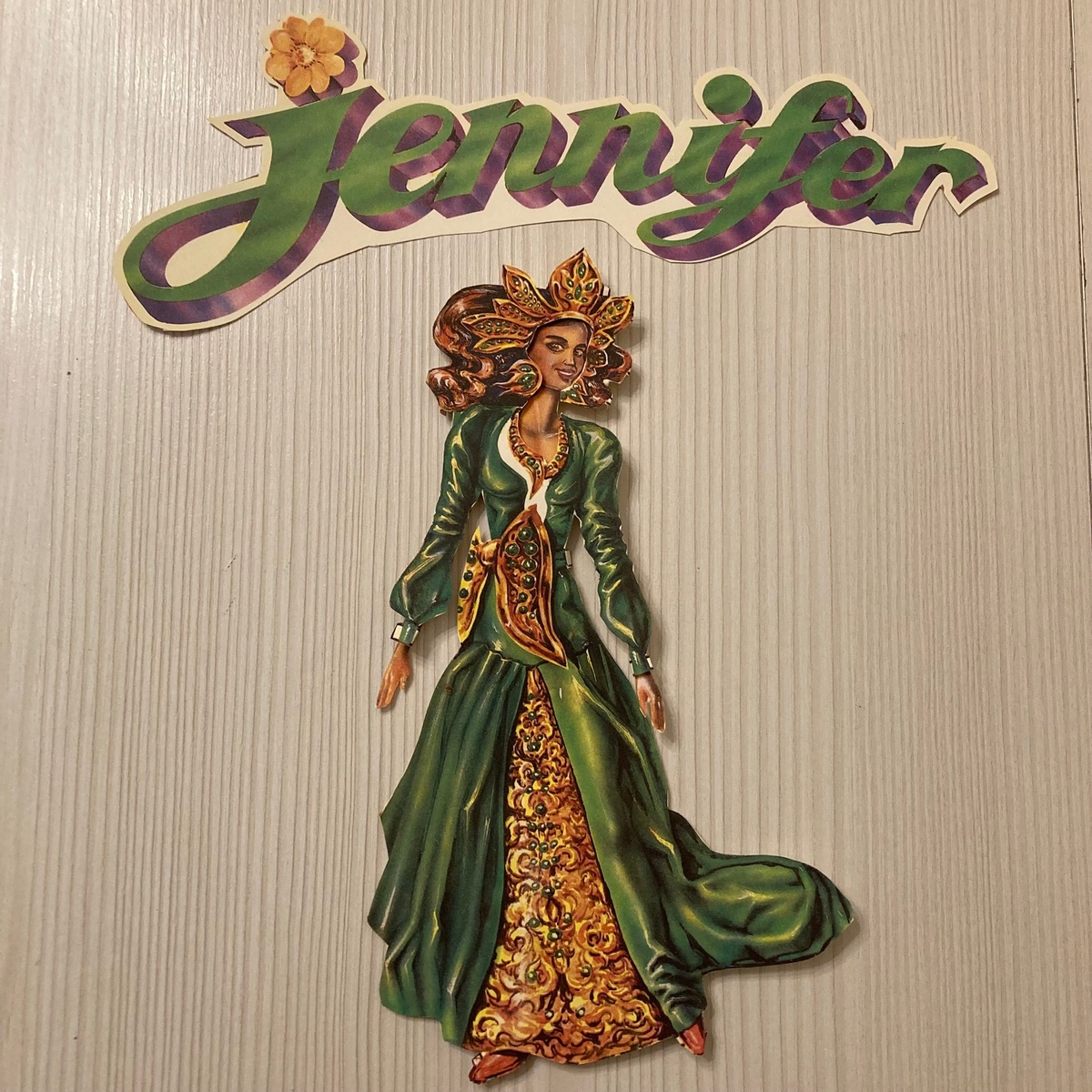 Добрый день! Меня тут осенило, что я давно не пополняла рубрику с куклами из киоска "Роспечать"/"Союзпечать" (если вы не в курсе, это легендарные куклы из 1990-х). Решила исправиться. И сегодня покажу вам Дженнифер. В детстве у меня этой куклы не было, я купила ее несколько лет назад, невырезанную, и она долго так у меня лежала. Но на прошлой неделе я решила, что пришла ее пора, и взялась за ножницы. Итак, давайте смотреть. Кукла на лицо симпатичная, волосы шикарные и пышные, фигура тоже отличная, единственное, мне кажется, что руки у нее уж больно худые. Но это, наверное, на любителя. Гардероб у Дженнифер, как и у большинства кукол этой серии, местами носибельный, а местами просто "вырви глаз". Но ведь за это мы их и любим) Начнем с наиболее спокойных нарядов и постепенно будем повышать градус безумия. На примере следующего костюма хочу продемонстрировать один недостаток одежды: слишком большое количество мелких клапанов. Он ими утыкан, как дикобраз какой-то: Из-за этих клапанов куклу