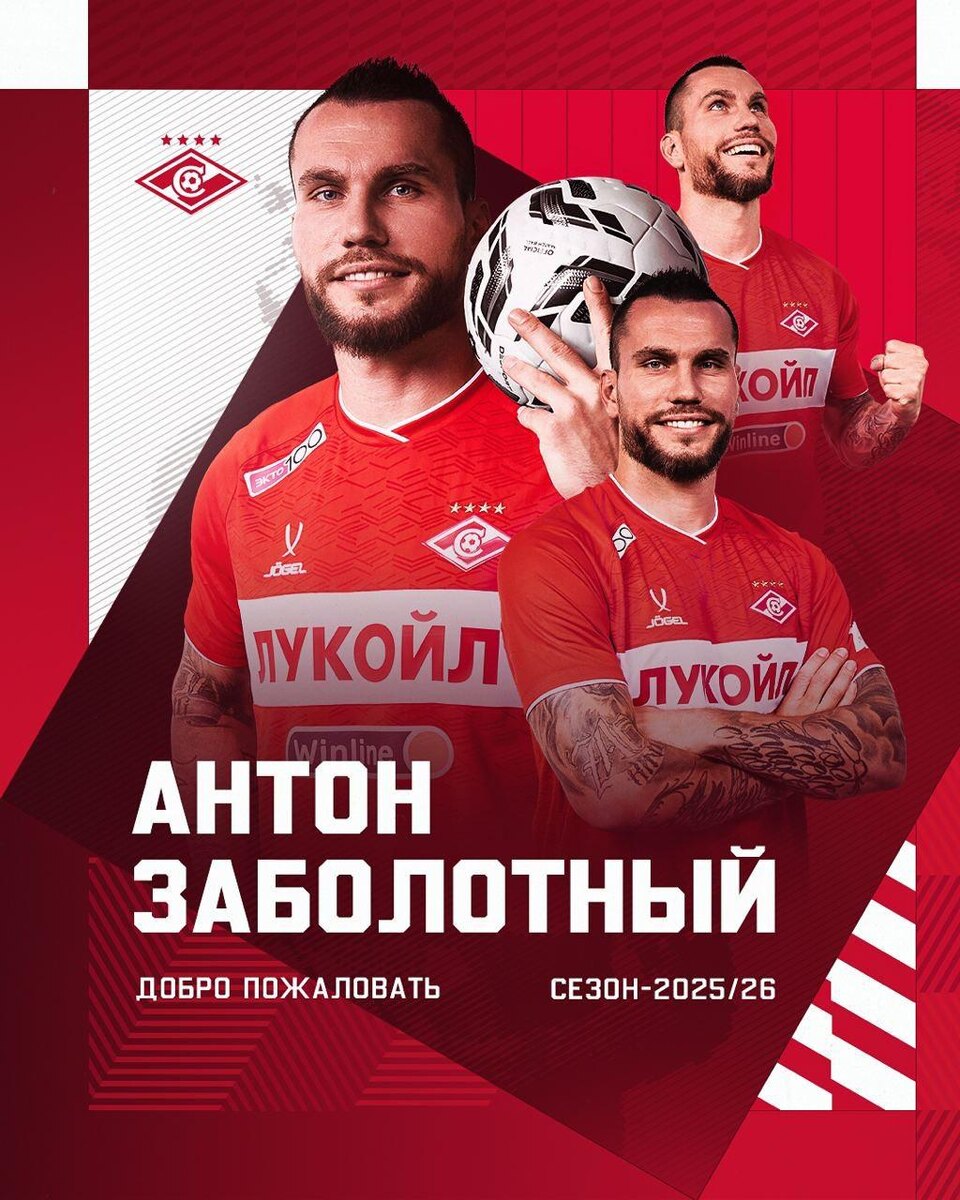 ♦️ «Спартак» объявил о подписании экс-форварда ЦСКА и «Зенита» Клубная пресс-служба сообщила, что контракт с 34-летним Антоном Заболотным рассчитан на один год. 💯 — классное приобретение 🔥 — очередной «пассажир» @russian_rt_sport