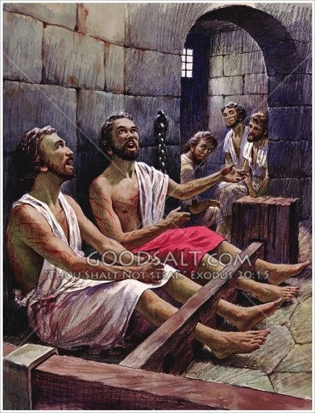 Вот и знамения, но корыстолюбие преодолело. «А воеводы, сорвав с них одежды, велели бить их палками и, дав им много ударов, ввергли в темницу, приказав темничному стражу крепко стеречь их» (Деян.16:22–23). Павел делал все, и творил чудеса и учил, а опасности разделяет с ним и Сила... А почему те не сказали, что они изгнали беса, что оказались нечестивыми к Богу, но обратили дело в государственное преступление? Тогда они повредили бы сами себе. Так и о Христе говорили: «нет у нас царя, кроме кесаря. ...всякий, делающий себя царем, противник кесарю» (Ин.19:12, 15).