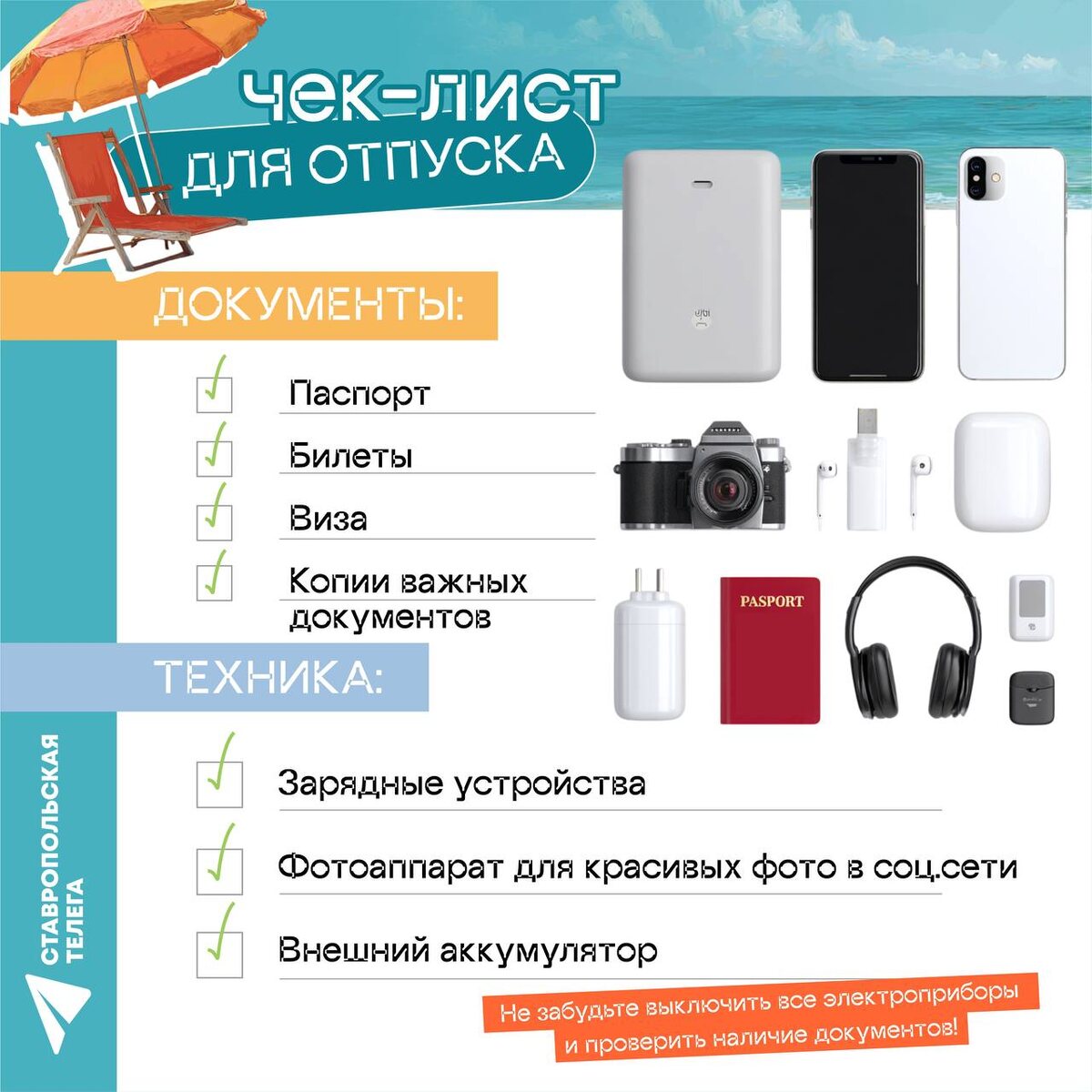 🏖️ Мы подготовили универсальный чек-лист для отпуска, чтобы основательно подготовиться к отдыху и ничего не забыть