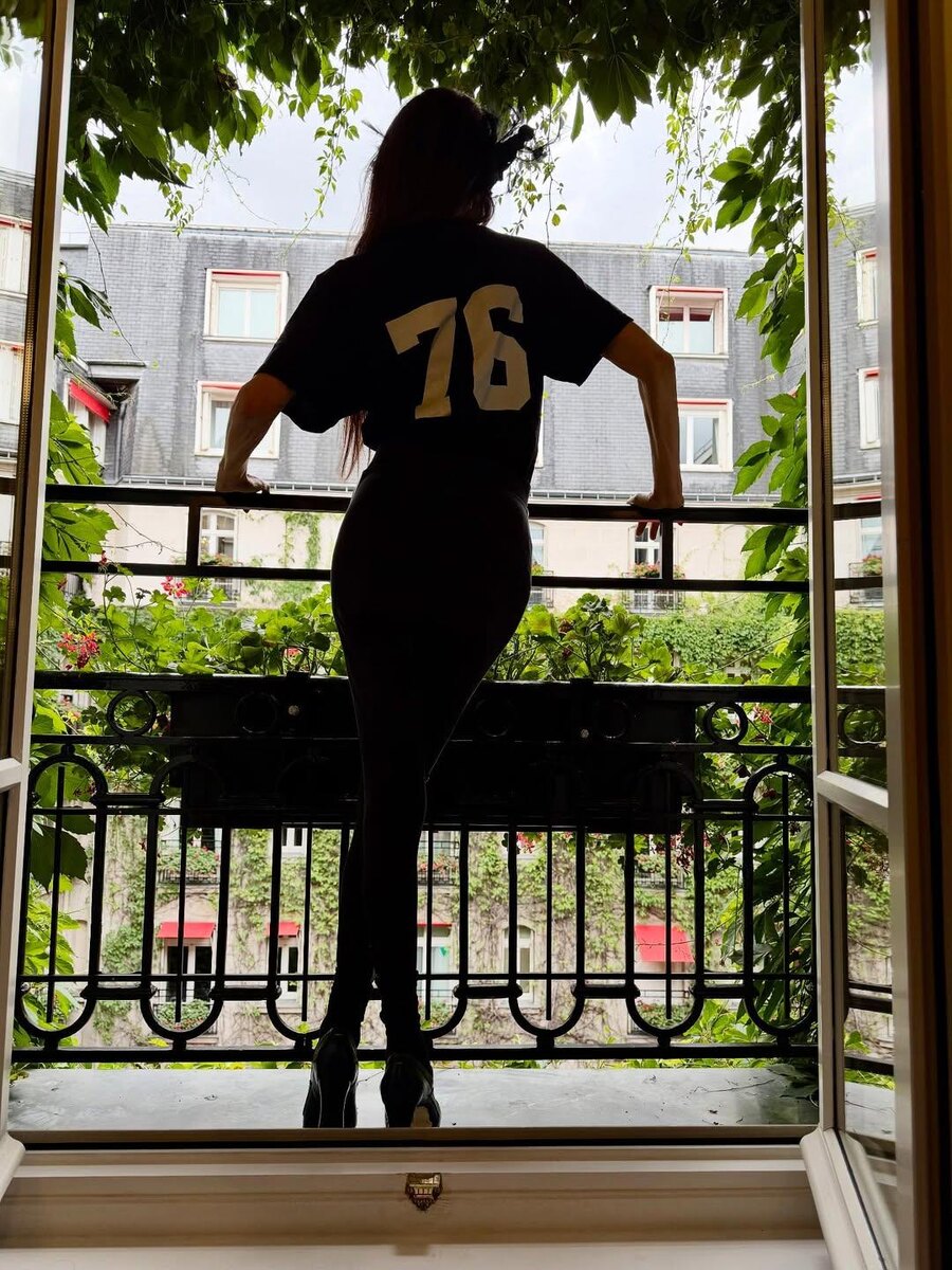 Париж, роскошный номер, и в нём — Вера Вонг, отмечающая свой 76-й день рождения. Не в кресле-качалке с вязанием, а позируя на балконе в футболке с цифрой "76", словно хвастаясь своим "стажем".