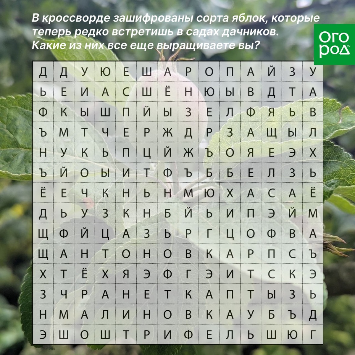 В кроссворде зашифрованы сорта яблок, которые теперь редко встретишь в садах дачников. Какие из них все еще выращиваете вы?