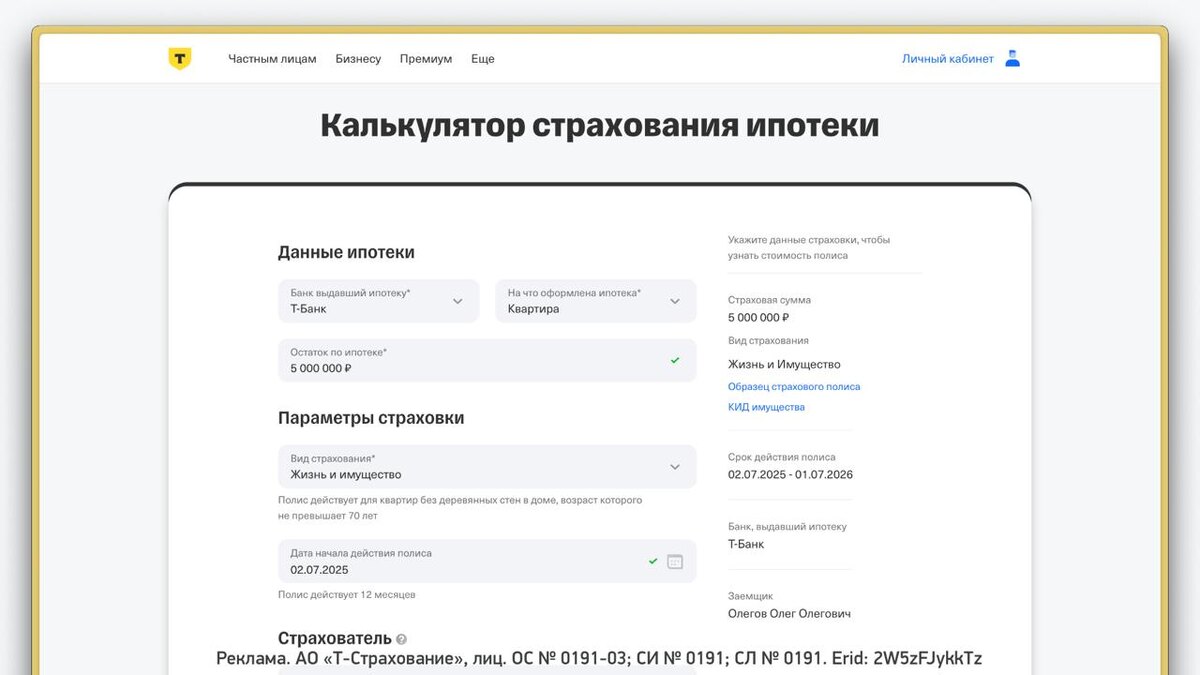 Выбрали при оформлении ипотеки страховую от банка? А лучше потратить полчаса, сравнить условия от разных страховых компаний и избежать переплаты. Банку все равно, где оформлен полис: главное, чтобы страховая была им аккредитована. Подсчитать стоимость полиса за пару минут можно с помощью «Т-Страхования». Оформление происходит полностью онлайн — при страховании жизни даже проходить медицинское обследование не нужно. Полис «Т-Страхования» признают крупнейшие банки — ваш наверняка в списке. «Т-Страхование» выделит вам персонального менеджера, который сориентирует при страховом случае. Помощь на связи 24/7. Заодно присмотритесь к другим услугам «Т-Страхования»: страхование квартиры, путешествия, полисы ОСАГО и КАСКО. «Т-Страхование» упрощает жизнь! Рассчитайте стоимость полиса в удобном калькуляторе на сайте.