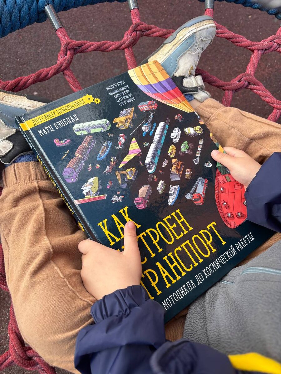 Как устроен Транспорт. 🚜 От мотоцикла до космической ракеты издательство Питер фанаты транспорта будут просто ликовать и прыгать от этой энциклопедии. Руслан сразу принялся рассматривать и изучать книгу. — в энциклопедии подробно рассказывают и показывают как устроены машины, что у них внутри и для чего они. малыш узнает, почему самолёт летит, а корабль не тонет, посмотрит, откуда взлетает ракета и как происходит погружение подводной лодки, а также познакомится с транспортом прошлого и даже будущего. каждая страница с красочными и детализированными иллюстрациями и с изображением всех мелочей. #Ру_читает
