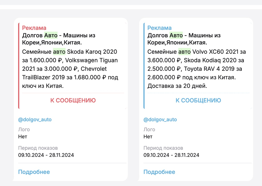 Продано более 25 автомобилей благодаря рекламе в TG ADS. Средний чек 3 млн руб.