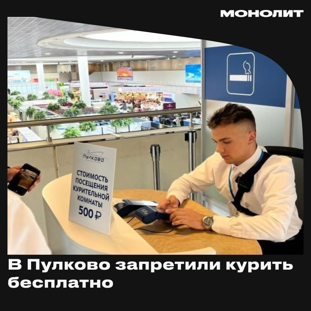 С 1 июля в аэропорту Пулково посещение курительной комнаты стало платным — теперь за каждый вход нужно заплатить 500 рублей. Решение объяснили тем, что содержание таких зон требует расходов на уборку и сопровождение, а аэропорты не обязаны предоставлять их бесплатно.