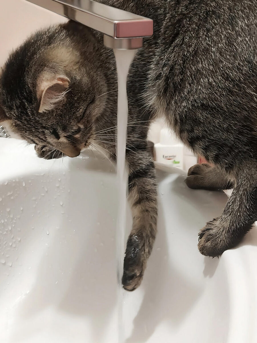 Она — единственная представительница наших кошачьих, кто совсем не боится воды. Другие участники банды относятся к любой жидкости, кроме воды из мисок или фонтанчика, с разной степенью брезгливости. Кто-то даже в саму ванную комнату заходить опасается (Ярик — с ним явно что-то нехорошее делали там до того, как он очутился в подвале). А эта мадама — ей льющаяся из крана вода, наполненная ванна и вот это вот всё откровенно любопытны. Она мочит лапы в раковине, пытается кусать текущую воду, стоит на краешке наполненной ванны и с интересом разглядывает дно. Вот совсем недавно аккурат свалилась туда нечаянно и, умело выбравшись, совершенно без привычной для кошек в такой ситуации паники удалилась сохнуть. Причём в совсем юном детстве мы её особо не купали — лишь намачивали в антилишайном растворе. Что-то генетическое, видимо. Вощем, Буся — стронг! А ваши кошачьи чо как? Пишите в комментариях и не забудьте подписаться 🤗