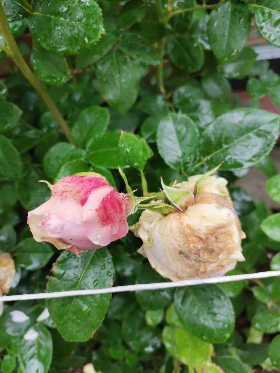 Серая гниль. Что сказать, тепло и влажно, самое время для грибковых заболеваний. Вооружаемся опрыскивателем и в сухую погоду за 6 часов до дождя опрыскиваем розы препаратом Раёк или Чистоцвет, 8мл на 10литров воды (4мл на 5л)