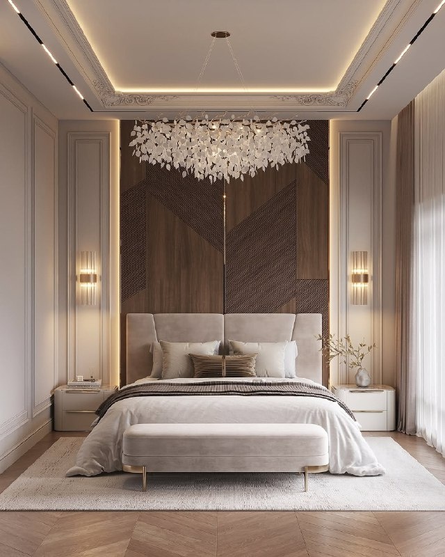 В дизайне спальни важны минимализм и функциональность. Избегайте перегруженности мебелью и декором, стремитесь к удобству и практичности. Освещение играет критическую роль, поэтому необходимо предусмотреть несколько источников мягкого, рассеянного света, таких как люстра, бра, торшер и подсветка потолка. Это позволит создать разнообразные атмосферы в комнате, подходящие для разных видов деятельности. Текстиль также является стержневым элементом: шторы, покрывала и подушки используются для создания комфорта, добавления цвета и текстуры.