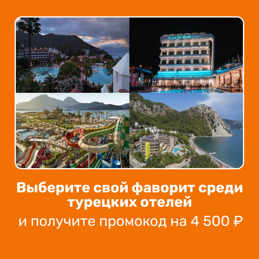 Турция у каждого своя: кому-то нужен пляж и тишина, кому-то — тусовки и шопинг, а кто-то мечтает о завтраке с видом на скалы. Чтобы не гадать — подготовили короткий тест ВКонтакте. Подскажем, какой отель подойдёт именно вам. В конце бонус — промокод на 4 500 ₽ на следующее путешествие. 👉 Пройти тест.