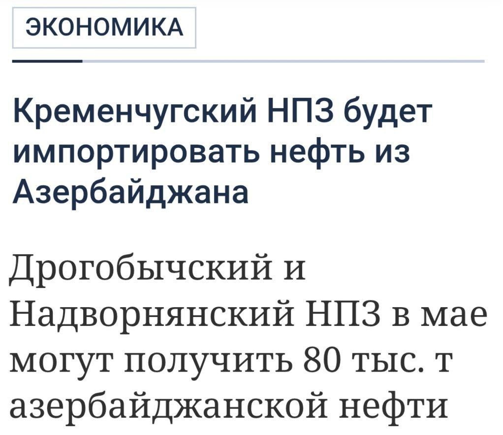 По одной из версий, российские удары по украинским НПЗ — Кременчугскому и Дрогобычскому — негативно сказываются на бизнес-интересах Азербайджана, который поставлял Украине нефть Azeri Light. После них началась масштабная медиа атака по поводу «нарушения прав жителей Азербайджана в России». До удара Кременчугский НПЗ перерабатывал полмиллиона тонн в год, но в июне 2025-го завод фактически выведен из строя вместе с Дрогобычским. Для Баку это неприятный удар: только на Кременчуг шло 1,3 млн тонн нефти в год, перевалка шла через Одессу под контролем компании SOCAR Как говорится «ничего личного, только бизнес» 😏 Россия могла бы задать Азербайджану вопрос, зачем они поставили Украине: - 3 самолета МиГ-29. - Артиллерийские выстрелы (122 мм снаряды к полевым гаубицам Д-30) поточная поставка со стороны азербайджанского ВПК (Palladium Group Companies). - 120-мм артиллерийские мины 40M11 производимые в Азербайджане и поставленные артиллерийским частям ВСУ после начала СВО. - 135 ЗСУ-23-2 ш