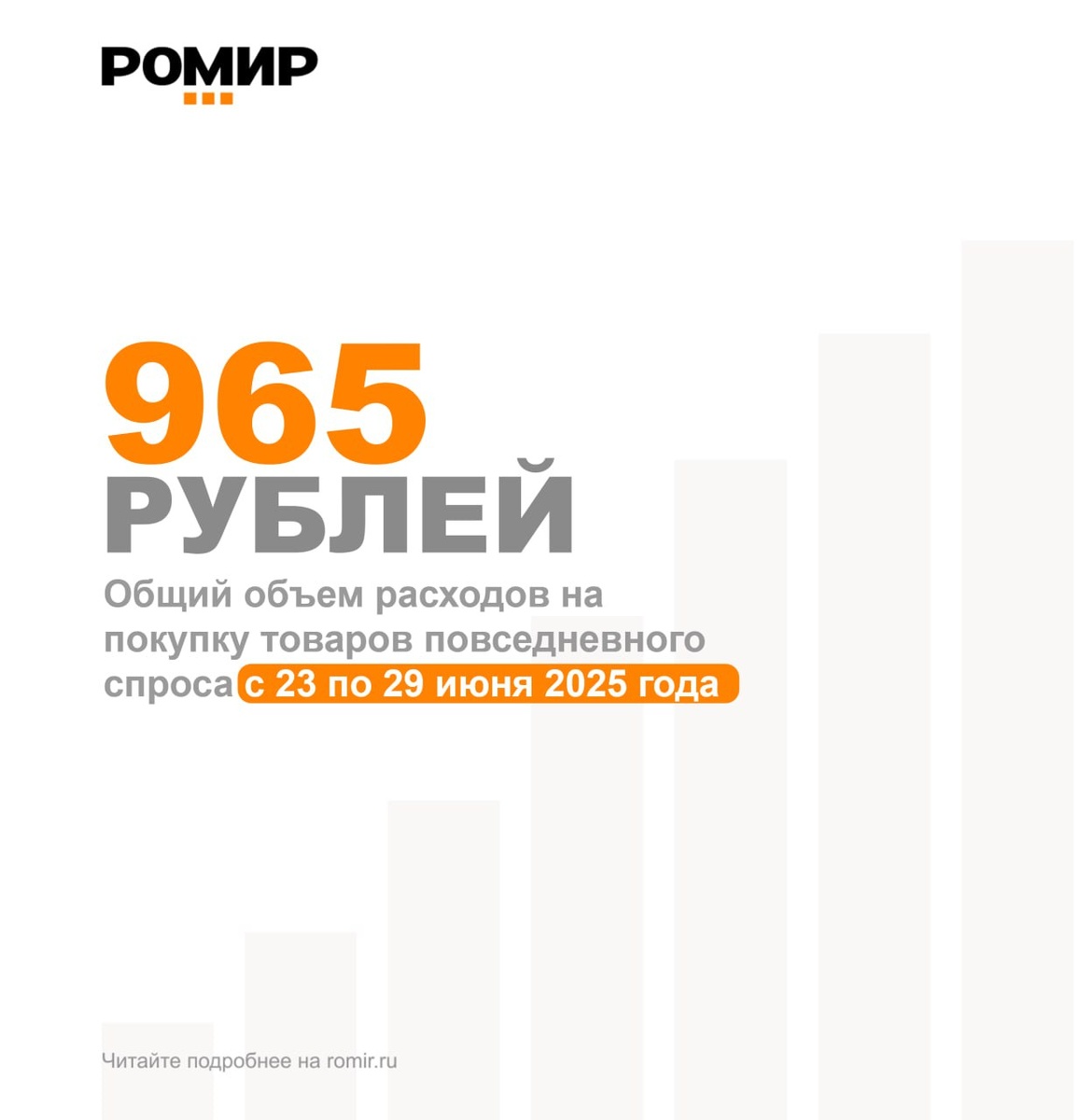 965 рублей составил размер среднего чека на прошедшей неделе со 23 по 29 июня. Это на 53 рубля или 5.5% больше, чем неделей ранее и на 105 рублей или 12.2% больше, чем в прошлом году.