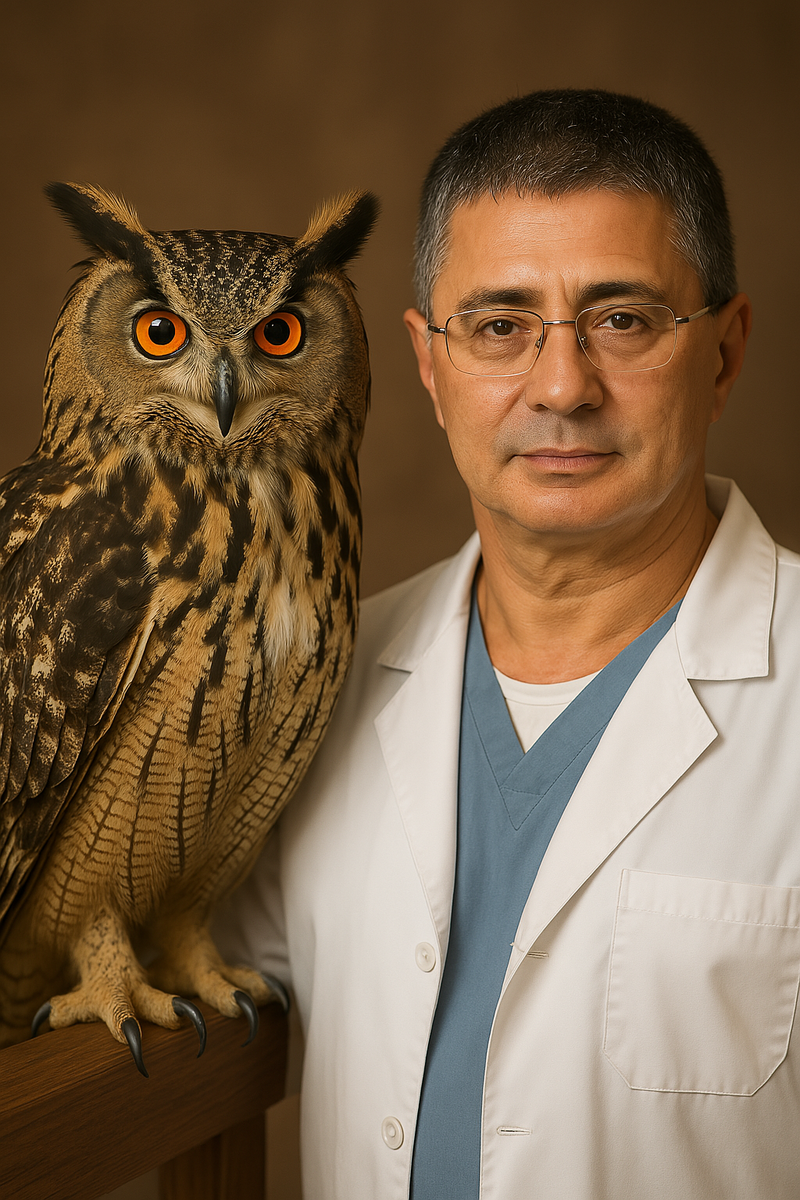 В ответ сова медленно опустила голову и молниеносно укусила его за палец. Без паники, без обид — Мясников отреагировал с иронией и философией: «А потому что не фамильярничай, всё правильно. Я не буду тебя раздражать, но ты просто красавец». После этого доктор предусмотрительно отошёл от пернатой пациентки и добавил, что у него на даче тоже живут совы. Видимо, общаться с ними он будет теперь исключительно на расстоянии уважения. 🩺 Мораль истории — даже врачи должны соблюдать дистанцию. Особенно с теми, у кого клюв, когти и строгое чувство личных границ. P.S. Ранее Мясников уже напоминал туристам о тех
