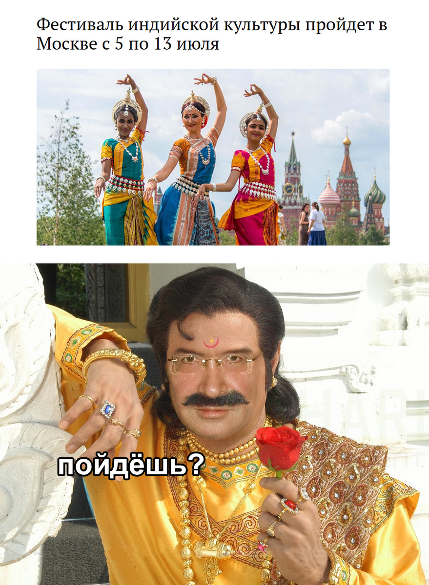 Фестиваль пройдёт с 5 по 13 июля на Манежной площади. Организаторы — Правительство Москвы и посольство Республики Индии в российской столице. На площадке, украшенной сотнями экзотических растений, разместят шале с национальными угощениями и сувенирами. Иностранные мастера организуют творческие занятия для всех желающих: участники могут сыграть на парном барабане табла, познакомиться с движениями танцев катхак и кучипуди, освоят основы разговорной речи на хинди. Кроме того, на Манежной площади откроется выставка предметов искусства нескольких регионов Индии. Индия занимает второе место по турпотоку в российскую столицу среди стран дальнего зарубежья.