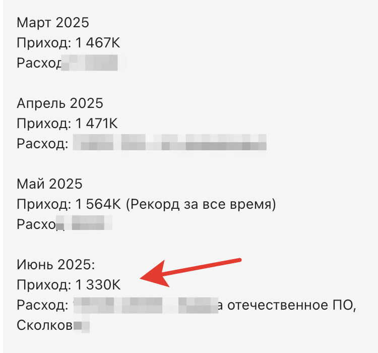 Выручка clickfraud.ru за июнь 2025 (да и другие месяца). Лето, люди отключают рекламы, сокращают бюджеты и мы тоже просели.