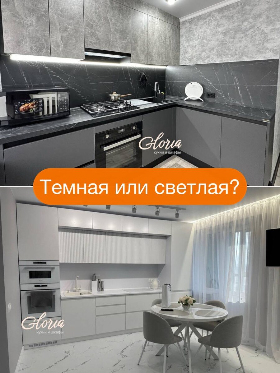 Иногда кажется, что при выборе кухни приходится выбирать между красотой и практичностью. Но зачем идти на компромисс? Мы в Gloria уверены: эстетика и удобство легко уживаются вместе. Главное, правильно подобрать материалы, фактуры и оттенки под вашу жизнь. Светлая кухня: это не только белый! Светлая кухня — это не про «стерильную больничную белизну», как часто думают. Это и благородный крем, и пыльная роза, и изящный оттенок «Тиффани». А ещё — вопреки мифам — за ней не сложнее ухаживать, особенно если выбрать матовые фасады. Загрязнения на них заметны даже меньше, чем на глянцевых тёмных поверхностях. Почему выбирают светлые кухни Gloria: ✔️ Множество оттенков и фактур: от мягких матовых до утончённого стекла; ✔️ Визуально расширяют пространство — особенно в небольших квартирах; ✔️ Подходят к большинству интерьерных стилей: от сканди до неоклассики; ✔️ Не перегружают интерьер и создают ощущение лёгкости и уюта. Тёмная кухня: элегантная, но с характером Тёмная кухня — смелый выбор, и он