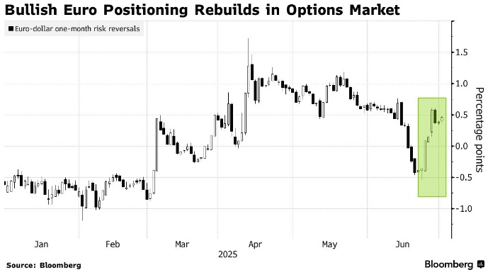 Евро достиг самого высокого уровня с сентября 2021 года и вырос на 14% с начала года. Трейдеры опционов ожидают продолжения ралли. Укрепление евро связано с более агрессивным смягчением монетарной политики ФРС, чем ЕЦБ. Евро приближается к самой продолжительной серии побед по отношению к доллару за последние два десятилетия, и трейдеры опционов прогнозируют, что рост ещё не закончился. Во вторник единая валюта выросла на 0,4% до $1,1829, что стало самым высоким показателем с сентября 2021 года и примерно на 14% с начала года. Если закрытие будет таким же высоким, то это станет девятым днём роста подряд, что станет самой длинной полосой с 2004 года и превзойдёт её только дважды с момента создания валюты в 1999 году. Опционные трейдеры усиливают свои бычьи позиции. Так называемые развороты риска — важный показатель рыночных настроений — на прошлой неделе показали третий по силе бычий сигнал в этом году. Данные Depository Trust & Clearing Corporation показывают, что почти две из трёх опци