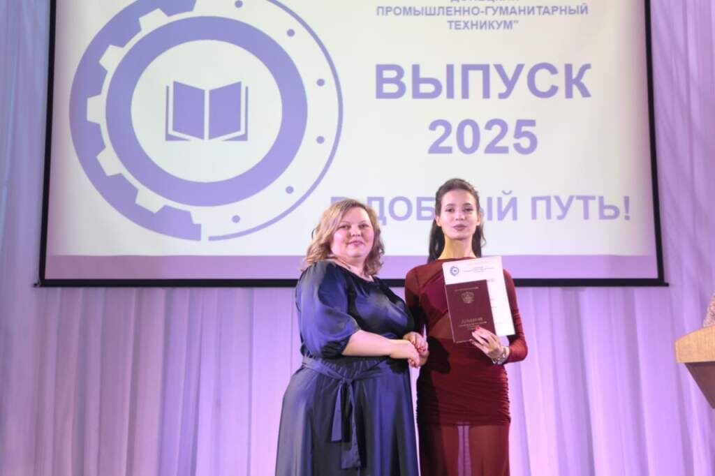 1 июля в Донецком историко-краеведческом музее состоялось торжественное вручение дипломов выпускникам Донецкого промышленно-гуманитарного техникума. В этот день в адрес выпускников прозвучало много теплых поздравлений и добрых пожеланий. Временно исполняющая обязанности директора техникума Ноженко Светлана Андреевна поздравила студентов с успешным завершением учебы, искренне пожелала найти себя на жизненном пути, в приобретённой профессии, творчестве. В этом году выпускниками Донецкого техникума стали 192 студента, 27 из них получили дипломы с отличием. Многим были вручены благодарственные письма за отличную учёбу, творческие и спортивные достижения. Хочется отметить, что вместе с дипломами студенты-выпускники, обучавшиеся на технических специальностях, также получили свидетельства о рабочей профессии по направлениям обучения. От имени всего педагогического коллектива с напутственными словами к выпускникам обратилась преподаватель специальных дисциплин, классный руководитель выпускной
