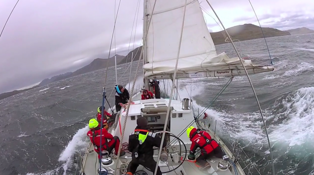 Подъем триселя в штормовых условиях может быть проблематичным. К этому моменту вы обычно уже идете по ветру, и парус ляжет на рангоут, создавая огромное трение. Ослабленный фал – а он неизбежно ослабнет в какой-то момент во время этого маневра – легко может захлеснуться за краспиц. Могут возникнуть всевозможные ошибки в обращении, ведь это то, что никогда не практикуется и отрабатывается достаточном объеме. А когда дует больше 40 узлов, хлопающие шкоты триселя могут вести себя драматично и способны повредить вам голову.