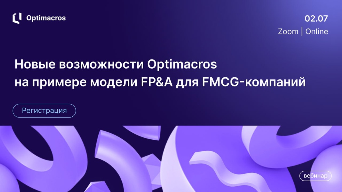 👍 Добрый день! Приглашаем вас на вебинар 02.07 в 17:00 в Zoom, где мы расскажем о возможностях платформы Optimacros на примере демонстрационной модели финансового планирования и анализа (FP&A) для FMCG-компаний.