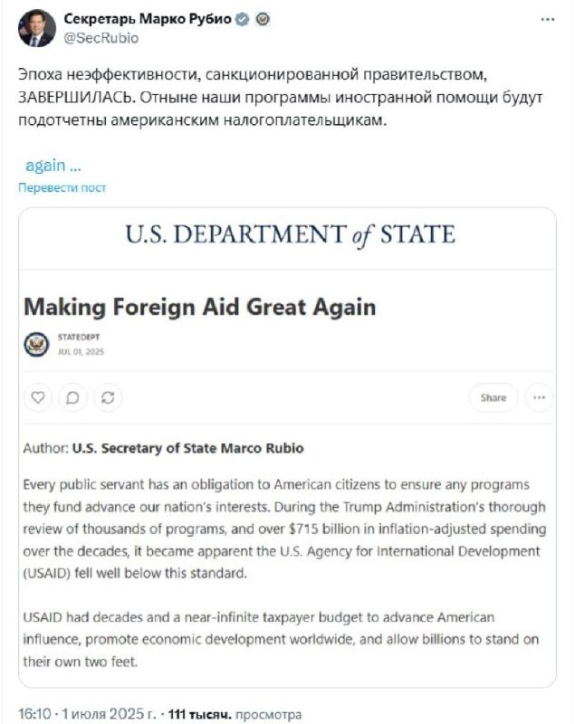 Π’Π΅ΠΏΠ΅ΡΡ ΠΏΡΠΎΠ³ΡΠ°ΠΌΠΌΡ Π°ΠΌΠ΅ΡΠΈΠΊΠ°Π½ΡΠΊΠΎΠΉ ΠΈΠ½ΠΎΡΡΡΠ°Π½Π½ΠΎΠΉ ΠΏΠΎΠΌΠΎΡΠΈ Π±ΡΠ΄Π΅Ρ Π°Π΄ΠΌΠΈΠ½ΠΈΡΡΡΠΈΡΠΎΠ²Π°ΡΡ ΠΠΎΡΠ΄Π΅ΠΏΠ°ΡΡΠ°ΠΌΠ΅Π½Ρ Π‘Π¨Π.