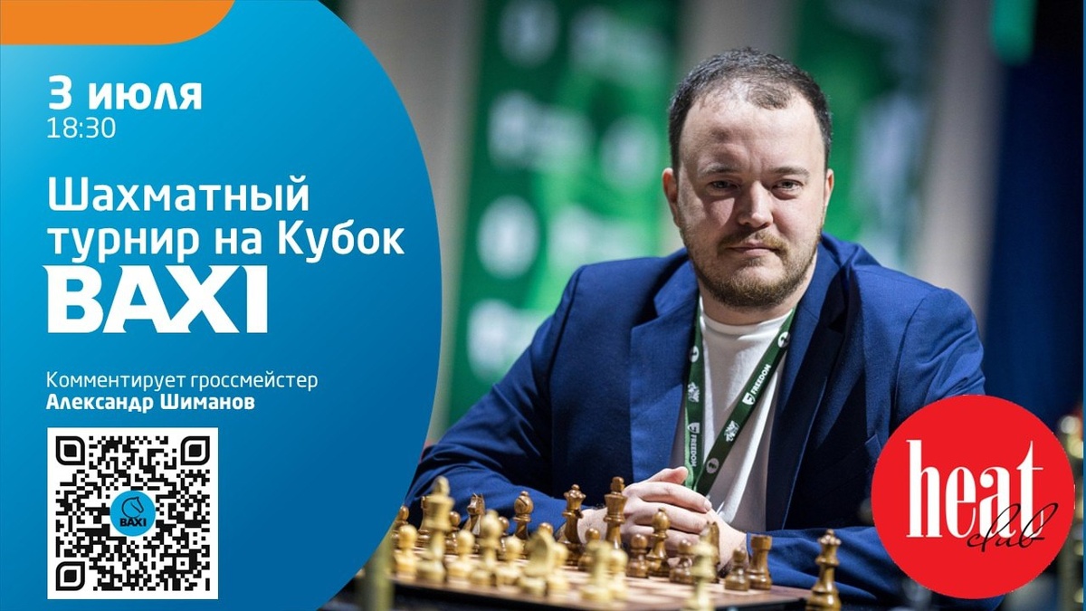 Друзья, Рады сообщить, что наш летний марафон шахматных турниров на Кубок BAXI продолжается! И не просто турниров, а настоящих стримов при поддержке ведущих шахматных блогеров! 📅 Чт., 03 июля ⏰ 18:30 (МСК) ♟Ждём вас на турнире: 👉https://lichess.org/tournament/7Zd5Ahp4 🎙 Компанию в комментаторской рубке на этот раз составит серебряный призер чемпионата России по быстрым шахматам 2019 года, шахматист побеждавший в личной встрече Магнуса Карлсена 🏆 и ведущий комментатор канала Levitov Chess. О шахматах с любовью 👑 Встречайте - международный гроссмейстер Александр Шиманов! 🎁 Призы победителям и претендентам гарантированы! 💯 🤝 Онлайн-турнир Шахматного Клуба BAXI состоится при информационной поддержке нашего партнера HeatClub - клуб профессионалов ОВиК 🔥 👉 Все подробности в TG-канале Шахматного клуба BAXI: 🔗https://t.me/BAXI_CHESS