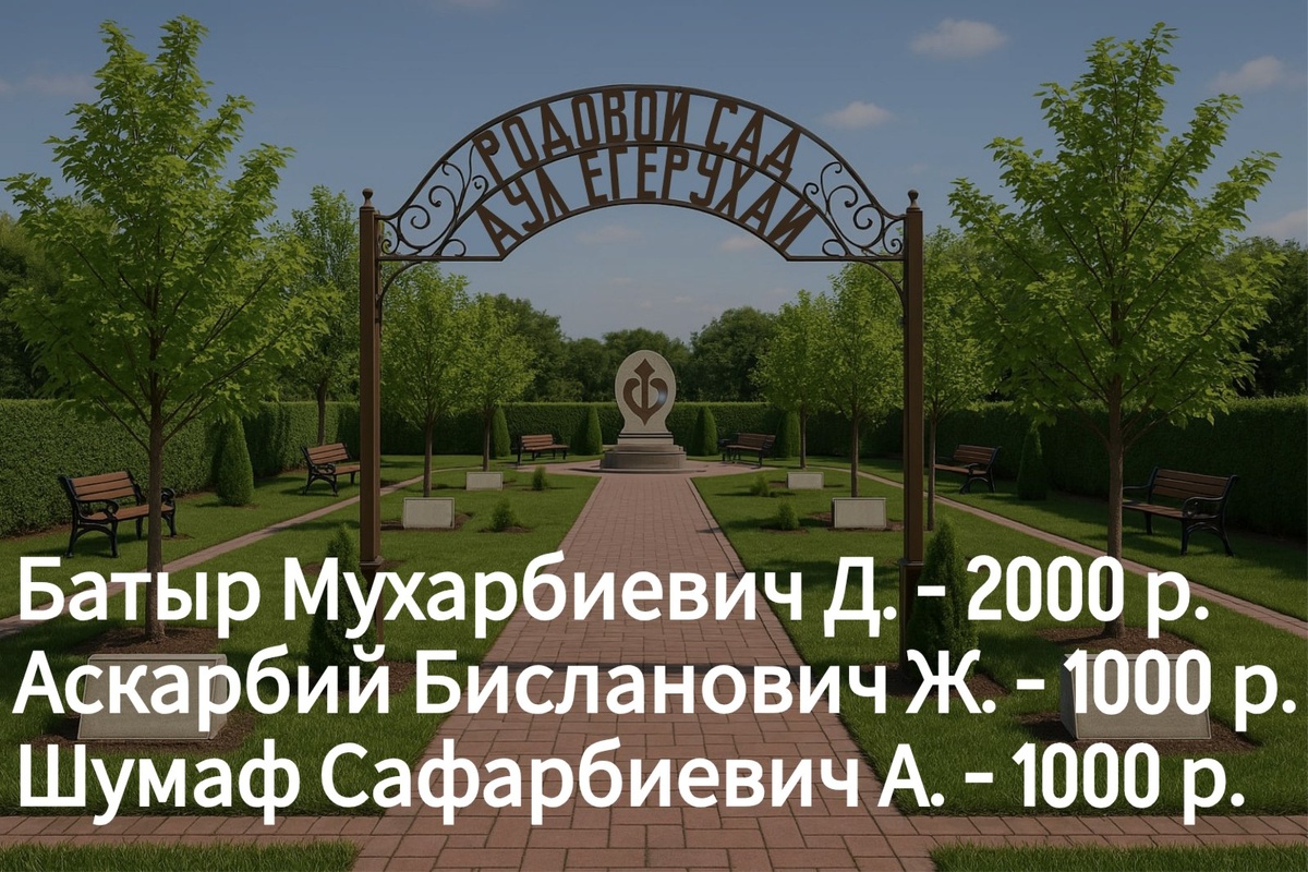 Поступления денежных средств от жителей и выходцев аула Егерухай на реализацию проекта Родового сада.