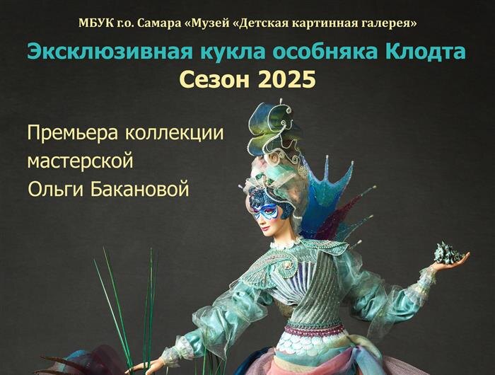 В среду, 2 июля, в 18:00 в Детской картинной галерее (Самара, ул. Куйбышева, 139) откроются выставки "Эксклюзивная кукла особняка Клодта. Сезон 2025" (0+) и "Премьера. Рисунки и керамика мастерских Детской картинной галереи" (0+). На первой выставке покажут премьерную коллекцию костюмных кукол особняка Клодта (автор Ольга Баканова). Также в экспозицию войдут куклы Ольги Бакановой из двух коллекций прошлых сезонов: "Европейское Возрождение в костюме" и "Рококо". На традиционной летней выставке "Премьера" представят рисунки, керамику, коллажи и макеты, выполненные детьми в мастерских Детской картинной галереи. Начинающим художникам в этой экспозиции 5-7 лет, опытным - 15-17.