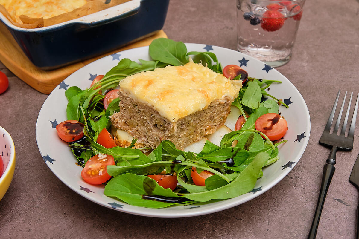 Я решила приготовить мясную запеканку. Дети были рады увидеть и попробовать большую котлету. Готовила из двух видов фарша: куриный и домашний из свинины и говядины. Запекали сразу двойную порцию. Приятного аппетита!