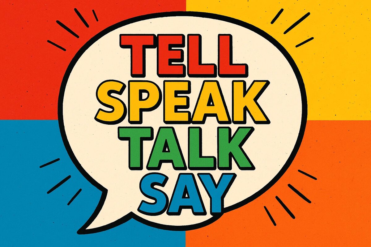 С этими четырьмя всадниками апокалипсиса сталкиваются и выпускники, сдающие ЕГЭ, и уже-давно-не-школьники. Все они вроде про "поговорить", но каждый со своим значением. Здесь фокус на том, что сказано, а не кому конкретно. После него чаще всего идёт прямая речь или просто информация. She said she was tired. Она сказала, что устала. "I'll do my homework later", he said. "Я сделаю домашку позже", сказал он. Его нельзя использовать с прямым объектом, типа say me. А вот с tell совсем другая история... С этим глаголом обязательно используем адресата сразу же после. Мы используем say и tell по-разному в косвенной речи. Say делает акцент на словах, которые кто-то произнёс, а tell — больше на содержании или смысле сказанного. ‘Hello,’ she said. "Привет", сказала она. Неправильно: ‘Hello,’ she told. She told him they were going on holiday. Она сказала ему, что они собираются в отпуск. Этот глагол используем, когда говорим про общение с кем-то, ведение диалога, обсуждение чего-то с другими